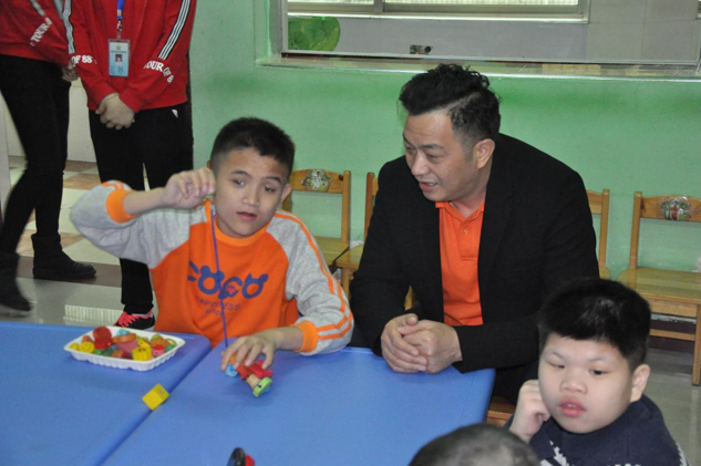 捐贈儀式后,基金會志愿者們與孩子們一起完成繪畫和手工作品,陪伴他們度過一個愉快的上午。▲基金會理事長湯旭東先生與孩子們親密互動